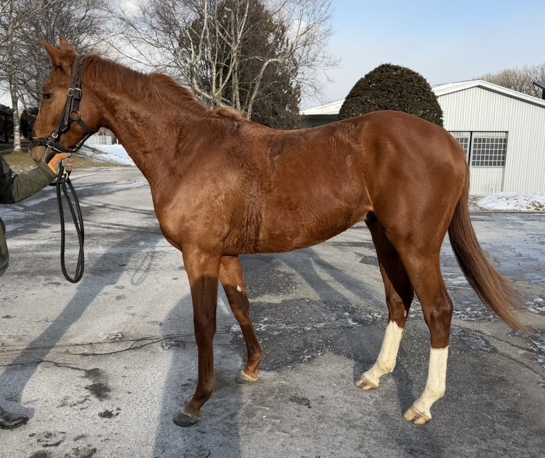 - 【2025/12/26】現在は屋内運動場~坂路コースでのキャンター調整(ハロン20~18秒程)※調教時は7~8頭程度、2列縦隊主体での集団調教+トレッドミル調整(常歩・速歩~軽目キャンター 勾配6~8%)調教メニューにつきましては、引き続き屋内運動場~坂路コースでのキャンター調整を主体に、先月から更にキャンターのペースを上げて調整を強化させていただく傍ら、屋内運動場では巻き乗りや横木跨ぎ等の練習も取り入れて、器用さや集中力、また精神面の向上を図っております。騎乗させていただいている感触といたしまして、先月にも申し上げておりますように繊細な気性面から、他馬の動きを気にする面はまだ残っておりますが、彼なりに我慢出来るようになっており、総じてスムーズに調教の流れに乗ることが出来ております。坂路コースでは当初は勢いのままひと息で登坂しておりましたが、徐々に折り合いも効くようになってきており、走りの精度も良くなってくれております。今後も順次調整を進めさせていただき、心身の成長を促してまいりたいと思います。体調面につきましては飼葉食いを含め良好で、馬体各部位にも問題はございません。馬体につきましては、調整を進めている中、胸囲と体重に増加が見られる点が好材料です。馬体重は430キロです。(加藤ステーブル)